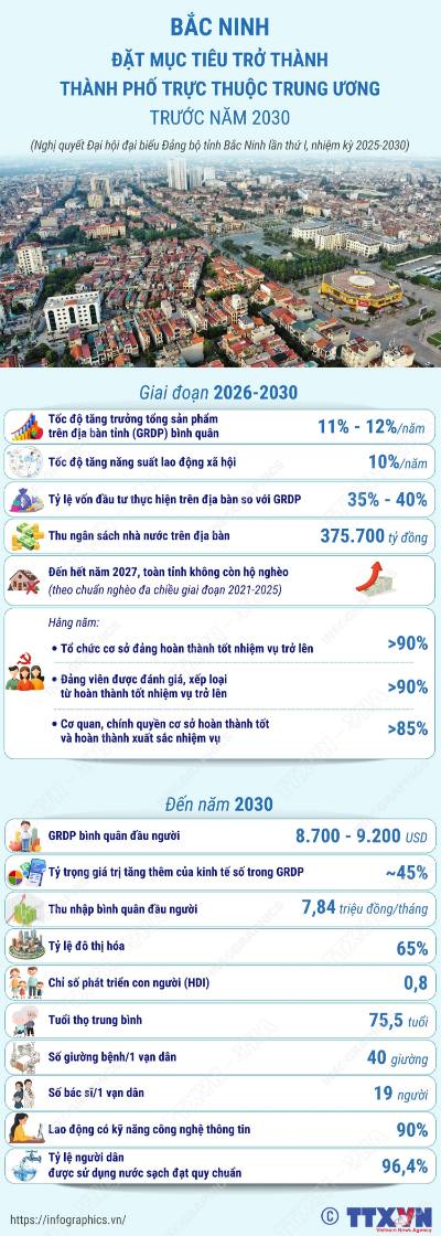 Chính trị - Ngoại giao Bắc Ninh đặt mục tiêu trở thành thành phố trực thuộc Trung ương trước năm 2030 31/10/2025 10:55