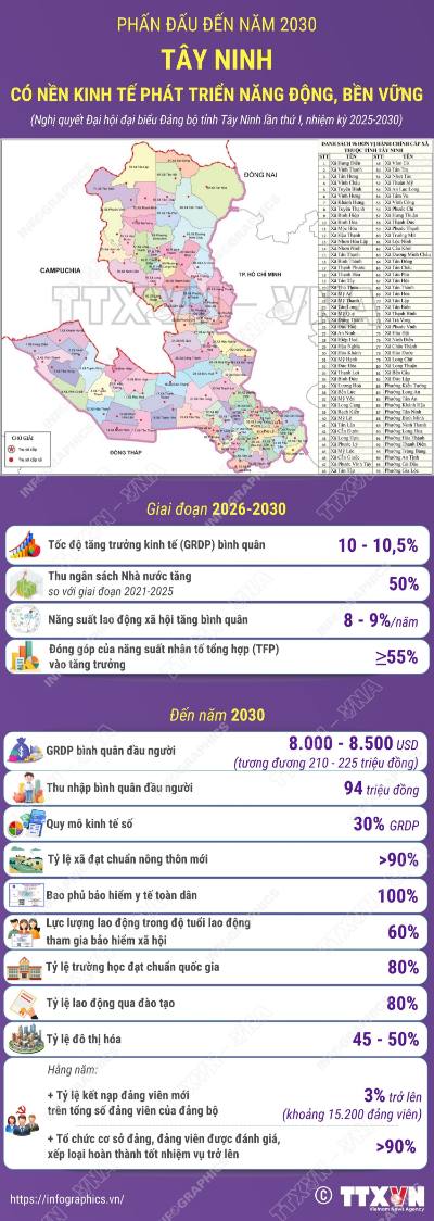 Chính trị - Ngoại giao Phấn đấu đến năm 2030: Tây Ninh có nền kinh tế phát triển năng động, bền vững 31/10/2025 11:10