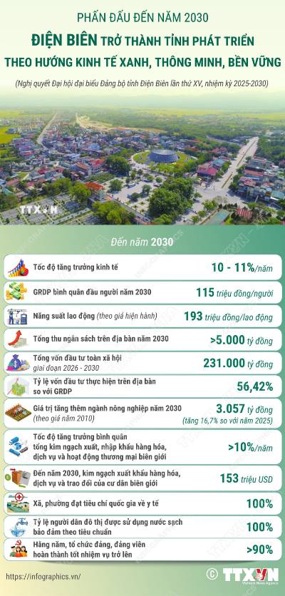 Chính trị - Ngoại giao Phấn đấu đến năm 2030: Điện Biên trở thành tỉnh phát triển theo hướng kinh tế xanh, thông minh, bền vững 07/11/2025 10:45