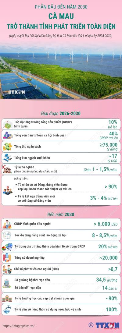 Chính trị - Ngoại giao Phấn đấu đến năm 2030: Cà Mau trở thành tỉnh phát triển toàn diện 01/12/2025 10:10